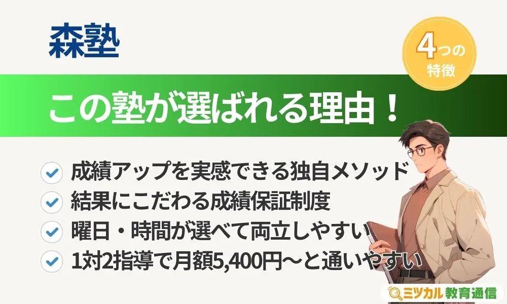 森塾は94.5%が成績アップを実感する独自の学習メソッドで学べる