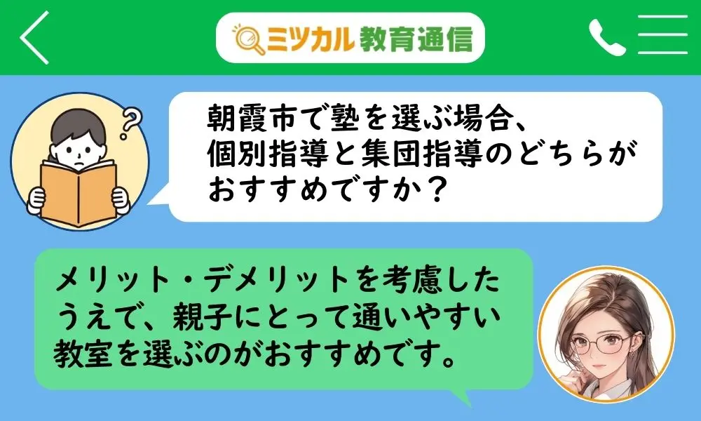 朝霞市で塾を選ぶ場合、個別指導と集団指導のどちらがおすすめですか?
