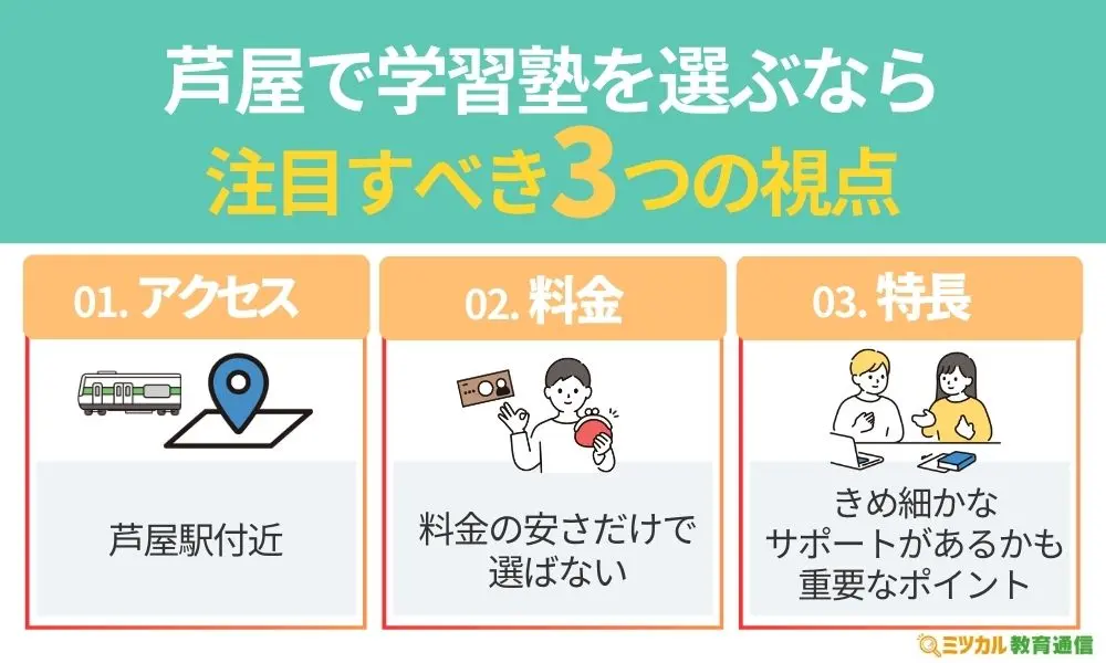 ポイント①芦屋駅付近にある学習塾だと電車で通いやすい