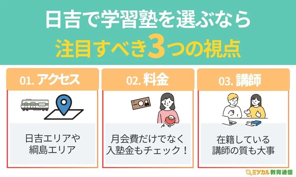 ここでは、日吉で学習塾を探す人に向けて、失敗しないための選び方をいくつか挙げていきたいと思います。