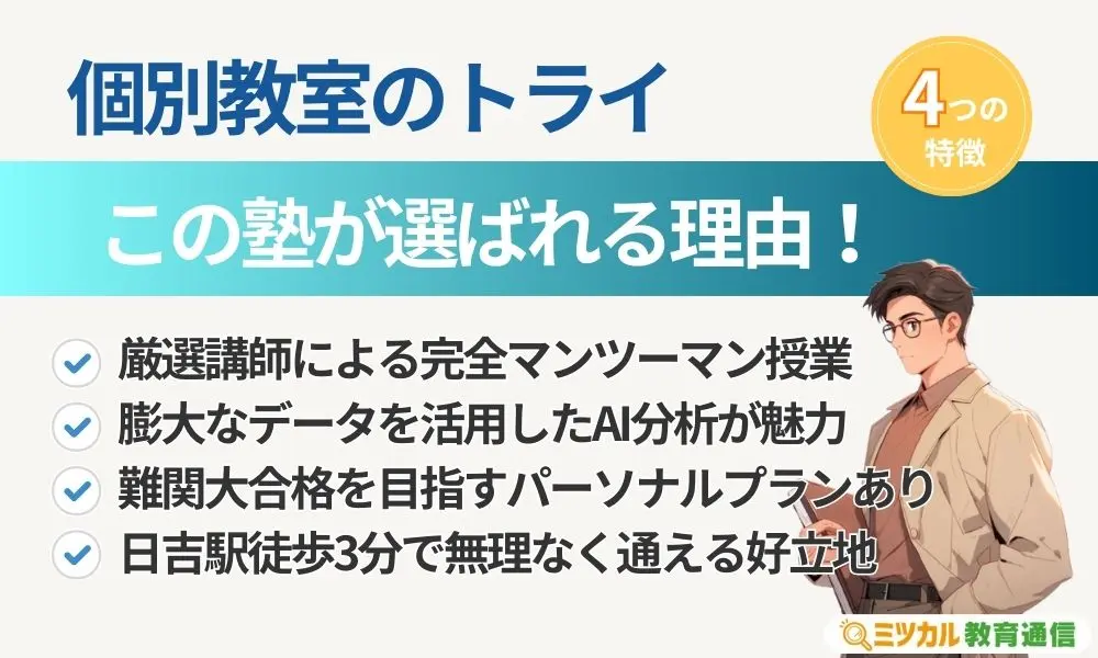 この記事で紹介した東京個別指導学院や個別教室のトライ、栄光ゼミナールなど、さまざまな学習塾グループが日吉にも教室を構えています。
