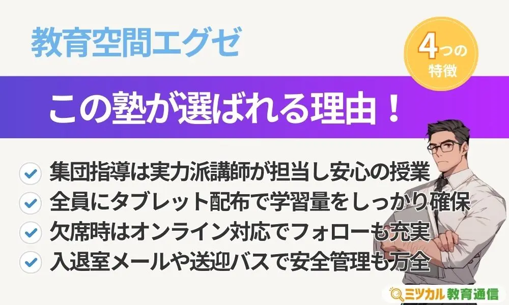 10位:教育空間エグゼは、安心安全な環境で学べる!学習者に寄り添い点数アップを目指す学習プログラムも魅力!