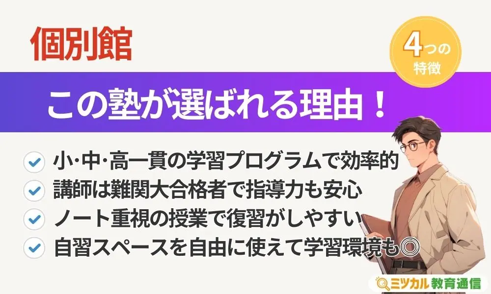 長年にわたる指導経験を活かした効果的な個別学習指導で、イード・アワード2023「塾」顧客満足度調査の【個別指導】〈全国〉、【高校生・大学受験生 個別指導】〈関西〉の2部門において最優秀賞を受賞するなど高い評価を得ています。