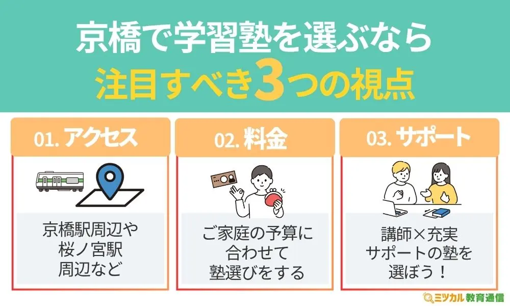 最後に、京橋駅周辺の学習塾選びで失敗しないためのポイントを3つご紹介します。