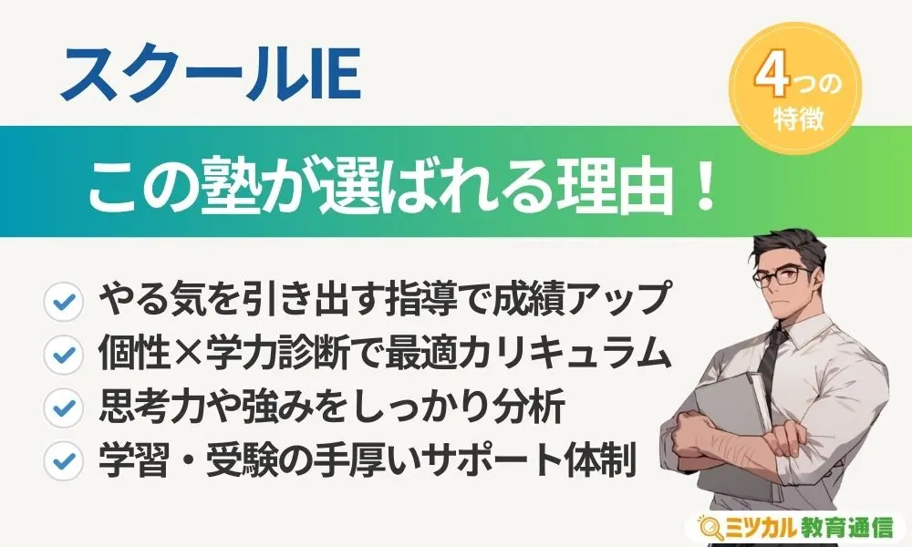 スクールIEは、学力はもちろん“個性”にも合わせたカリキュラムで学べる学習塾