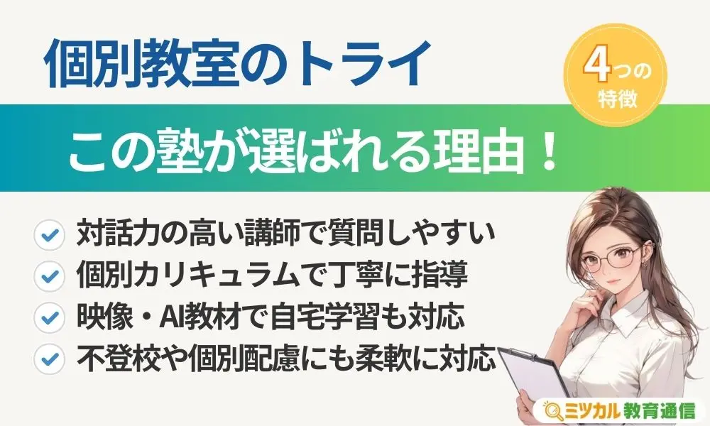 個別教室のトライは、1対1で学べる完全個別指導の学習塾です。