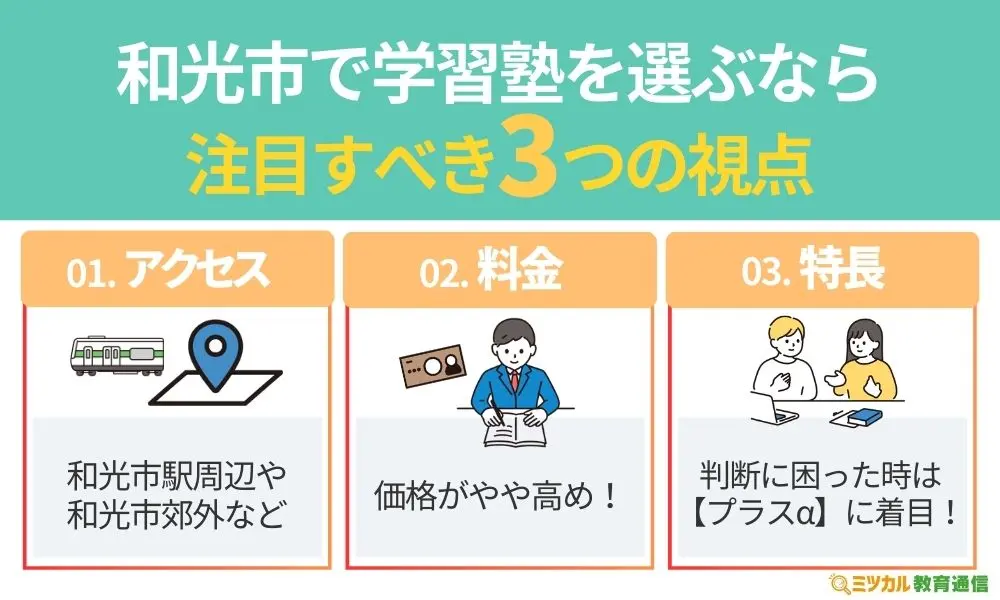 和光市の学習塾を選ぶ際の“アクセスに関するポイント”は下記の通りになっています。