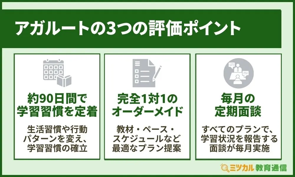 | サービスの特徴 | ・毎月100名限定で無料相談を実施している ・学習内容だけでなく、一人ひとりのスケジュールも鬼管理 |