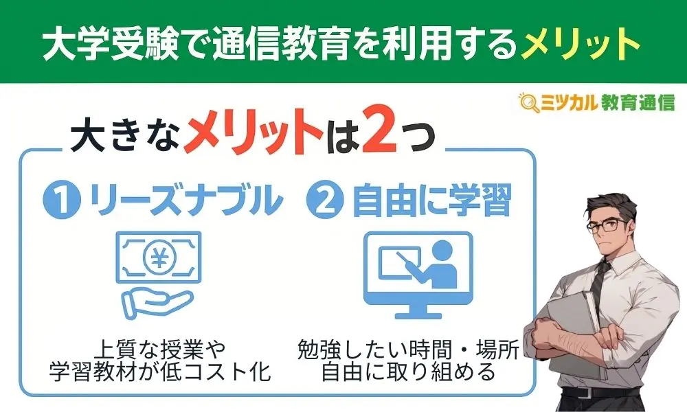 通信教育にも、予備校・家庭教師にも、それぞれ大きなメリットがあります。
