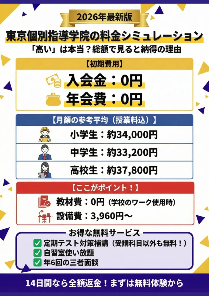 【2026年4月】東京個別指導学院の料金は3万円台が相場!高いと言われる理由も【入会金0円】