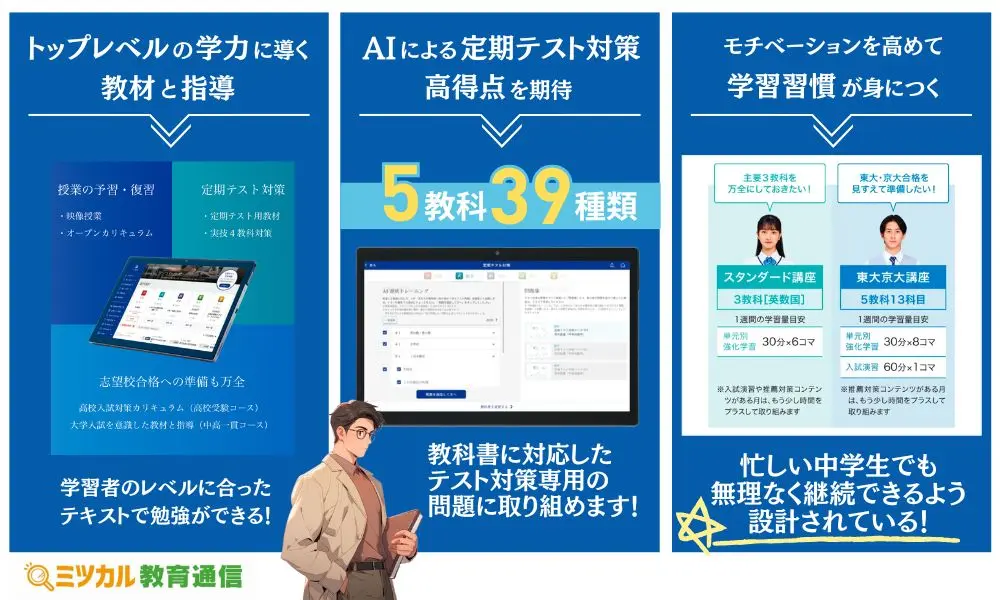 Z会の通信教育 中学生コースの強みは、大きく分けると以下の3つです。