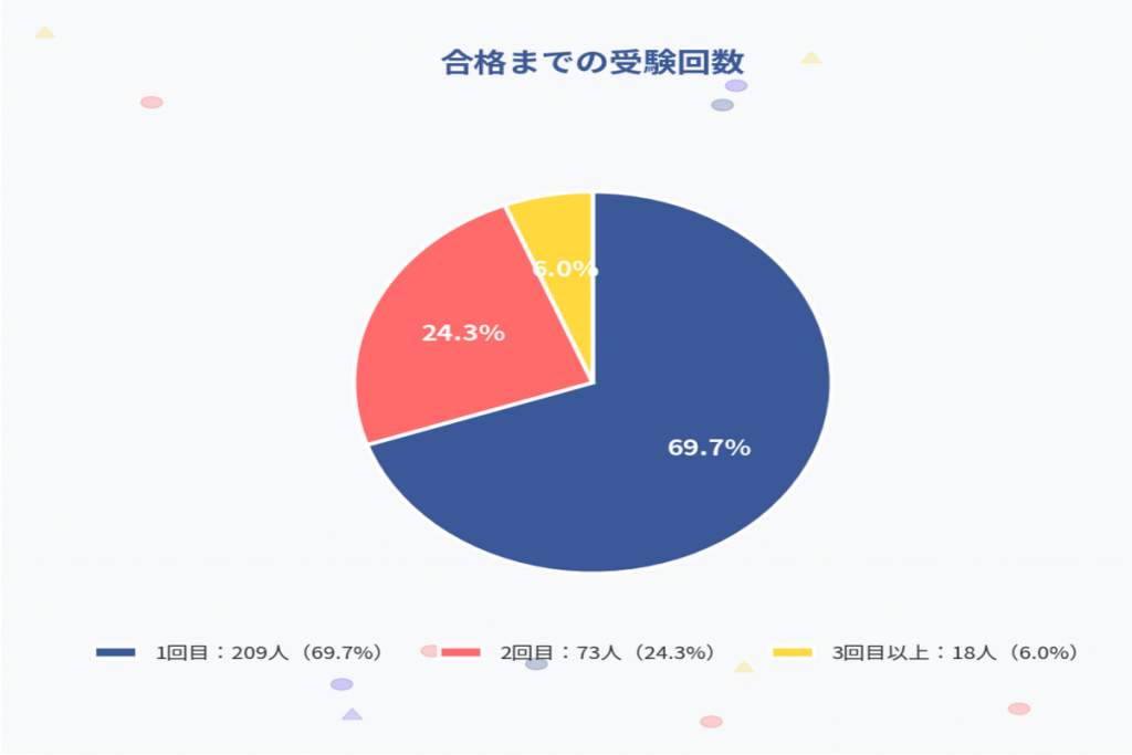 3回以上かかった人も6.0%おり、何度も挑戦し続けた末に合格を勝ち取った人もいます。