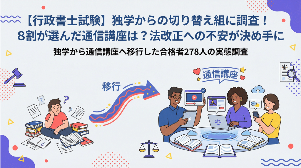 【行政書士試験】独学からの切り替え組に調査!8割が選んだ通信講座は?法改正への不安が決め手に