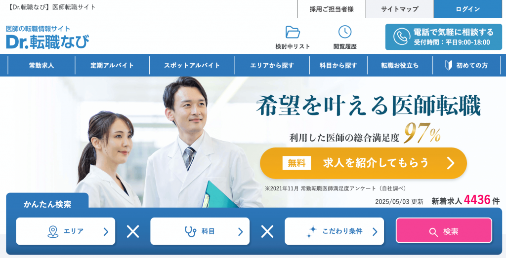 医師転職ドットコムはさまざな診療科目・勤務形態に対応した医師転職エージェント