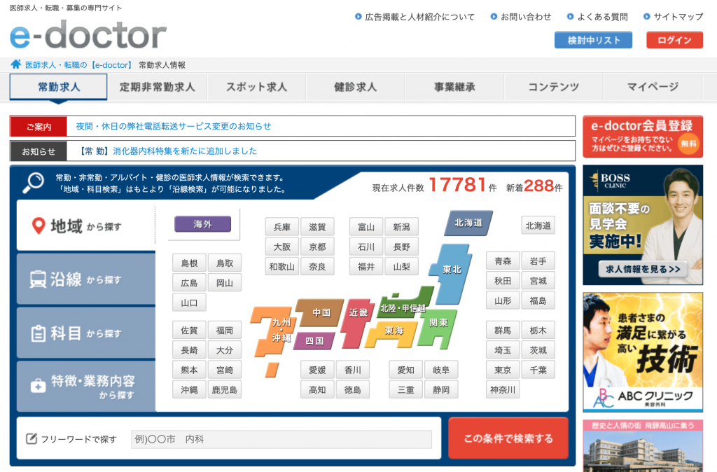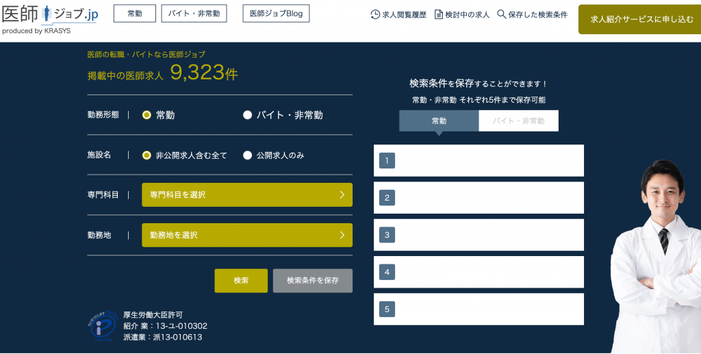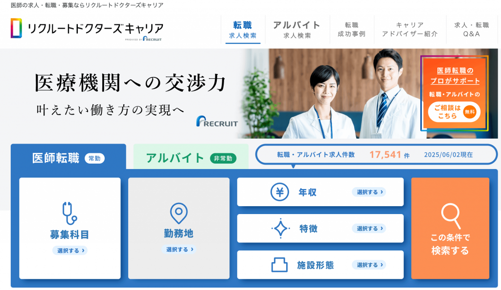 - 医師向けの求人を多数取り扱っている