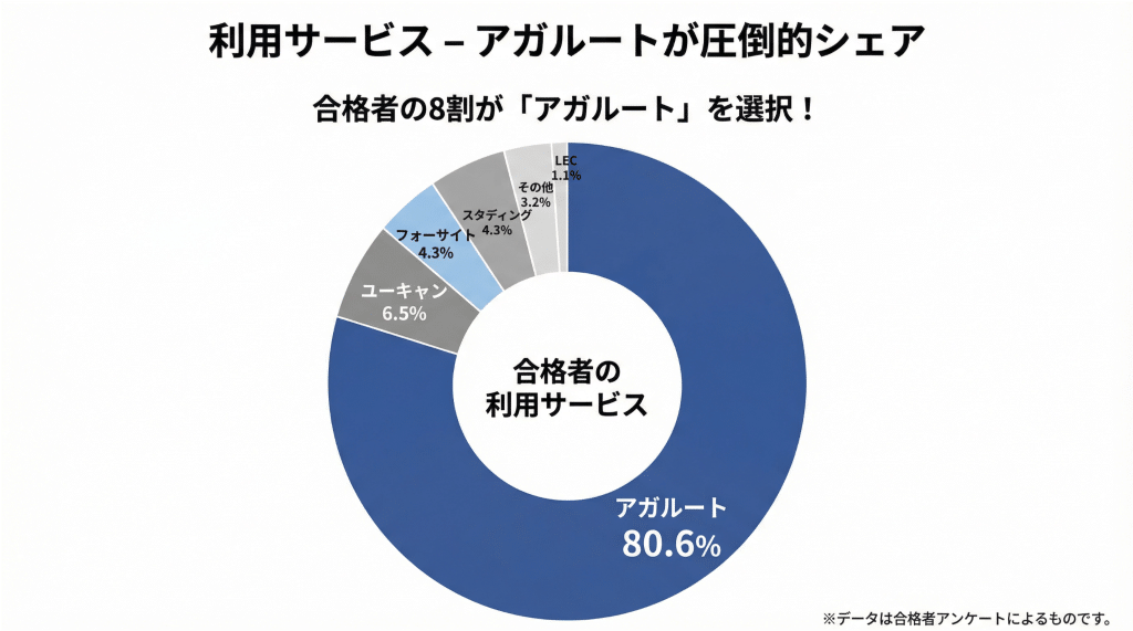 【利用サービス】合格者の8割が「アガルート」を選択!圧倒的なシェアが明らかに