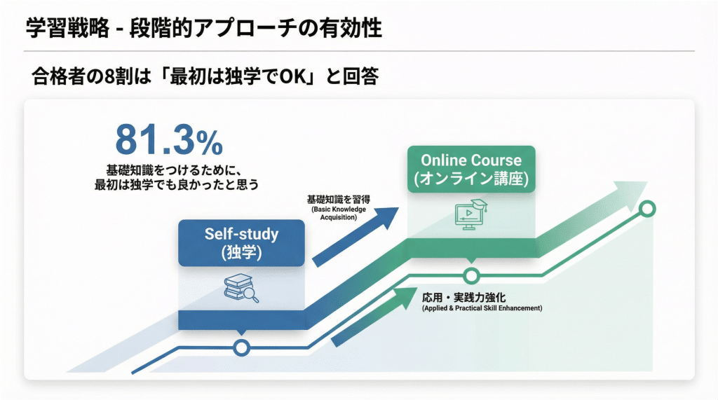 【学習戦略】合格者の8割は「最初は独学でOK」と回答