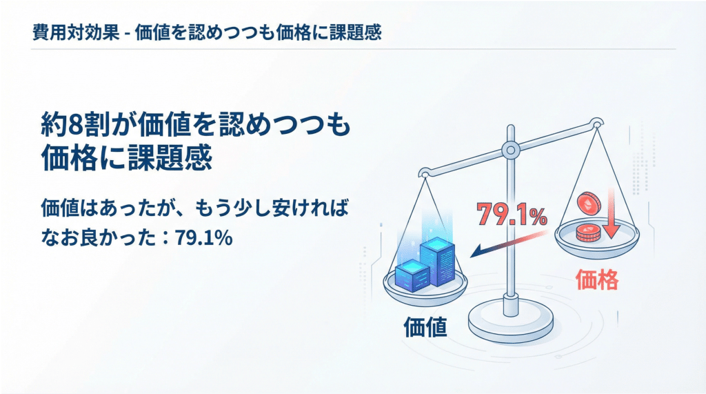 【費用対効果】約8割が価値を認めつつも価格に課題感