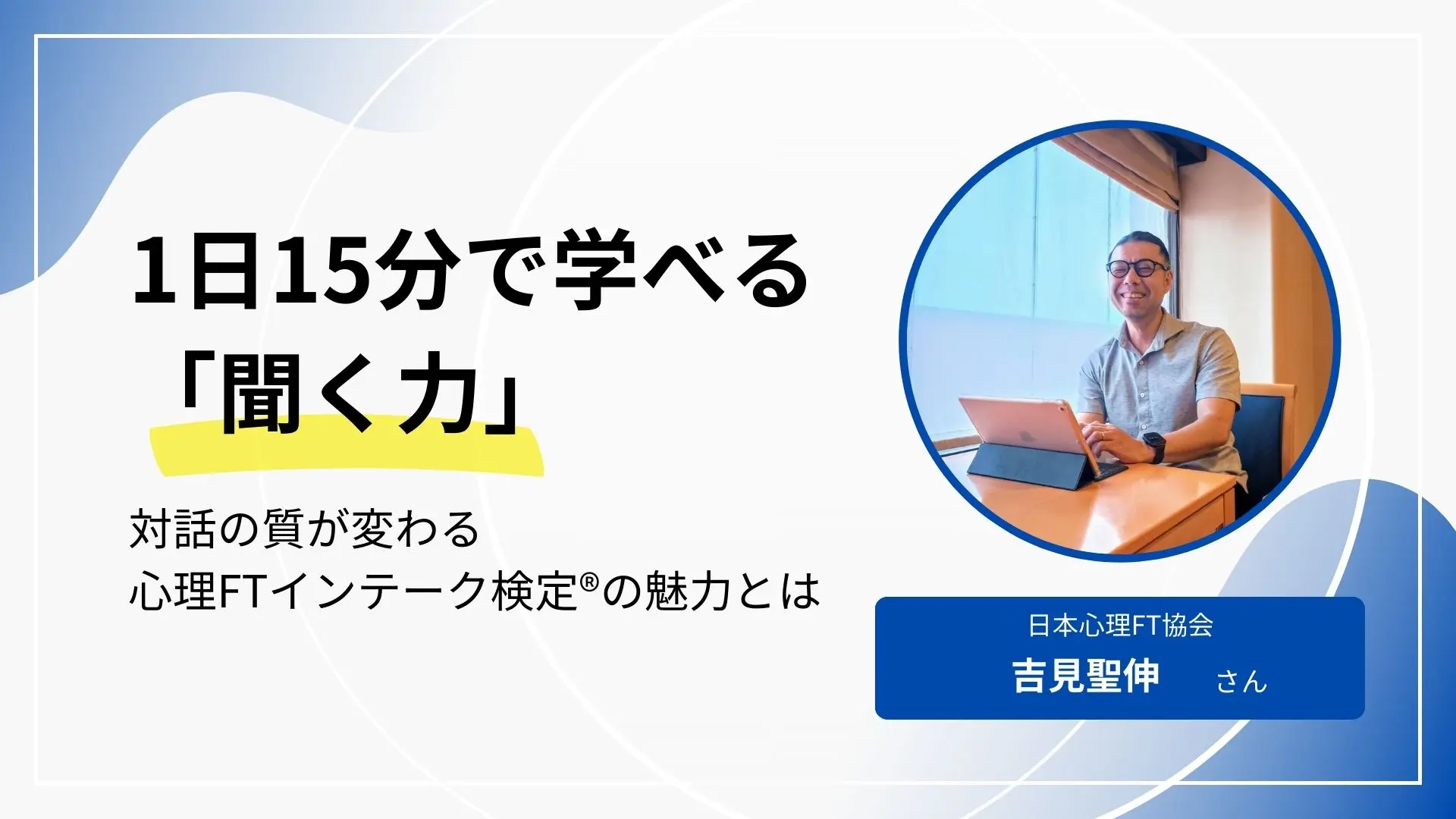 今回取材したのは、「心理支援の最初の一歩=インテーク」に着目し、誰もが学べる検定制度として「心理FTインテーク検定®」を立ち上げた、日本心理FT協会の代表理事・吉見聖伸さん。医療・福祉・教育の現場で豊富な経験を持つ吉見さんが、なぜ「インテーク」に焦点をあてたのか。資格の意義と可能性について語っていただきました。