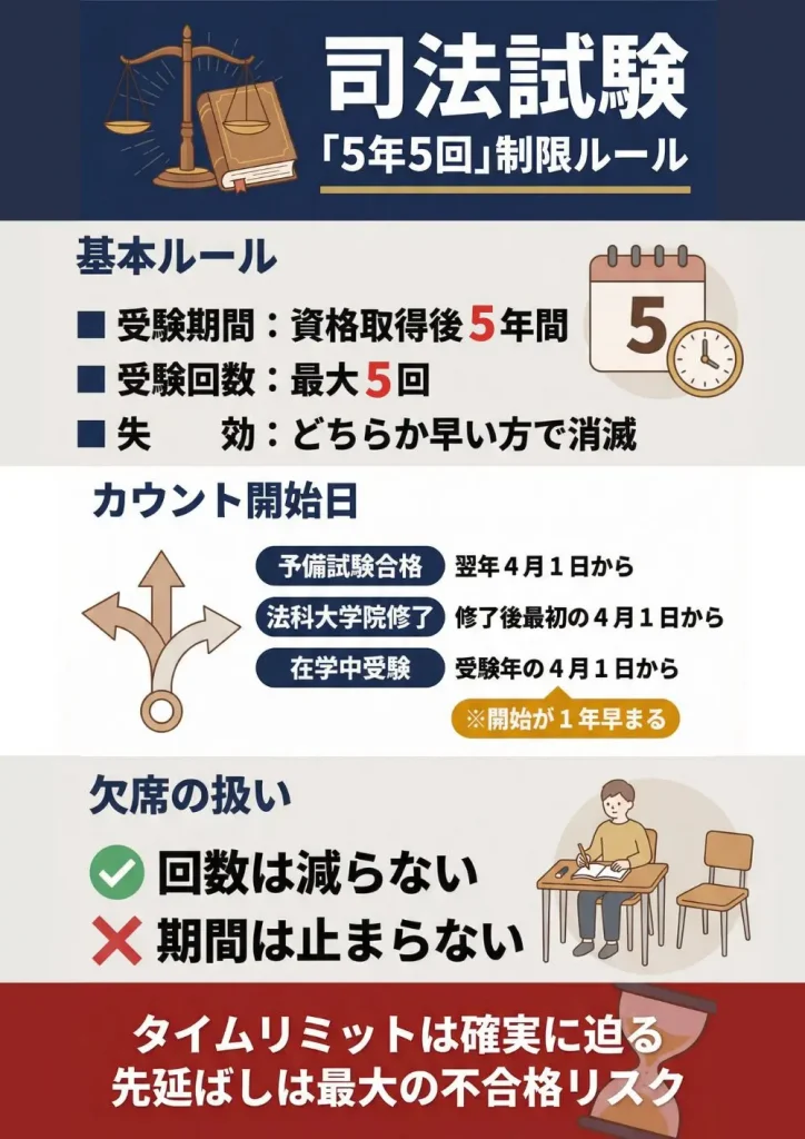 司法試験は何回まで?基本の「5年5回」制限ルールを徹底解説