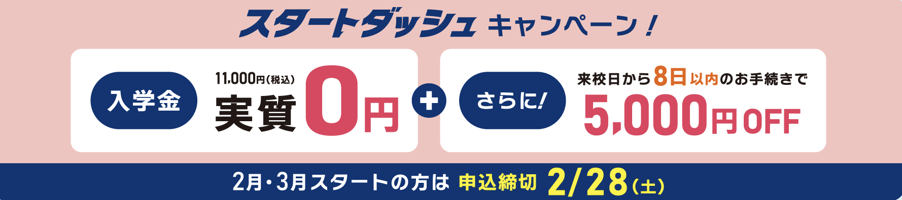 入学金0円+5000円OFFというお得な取り組みもやっているようです↓