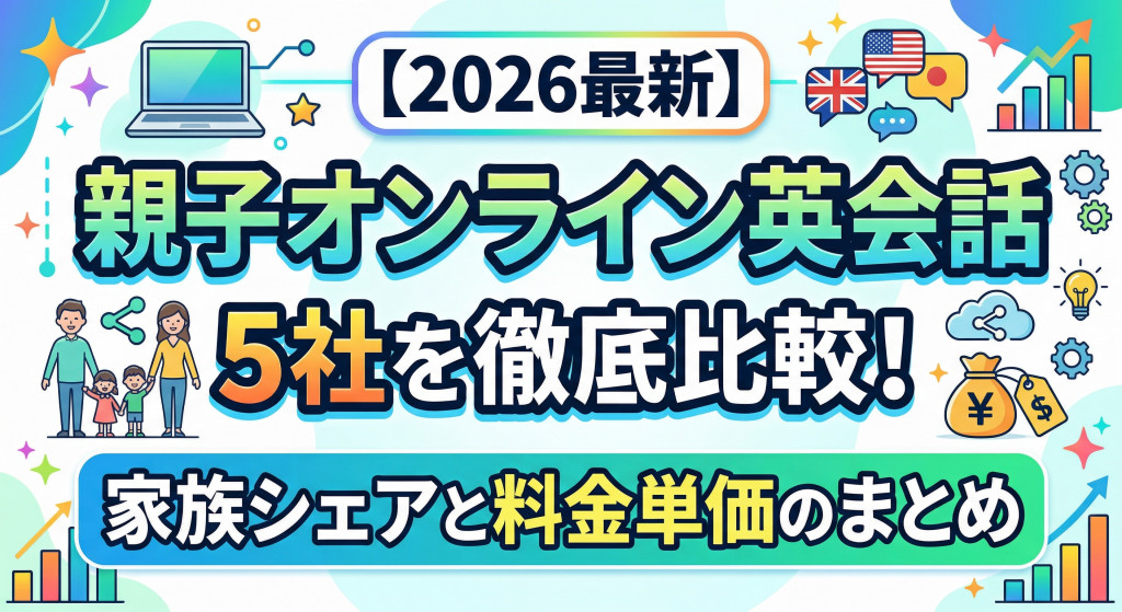 【この記事でわかること】 親子向けオンライン英会話5社の徹底比較ランキング 「家族シェアの仕組み」や「実質単価」がひと目でわかる調査データ 失敗しないための“ミツカル英会話流”選定基準 「子供に英語を習わせたいけれど、月謝が高い」「自分も学びた... -