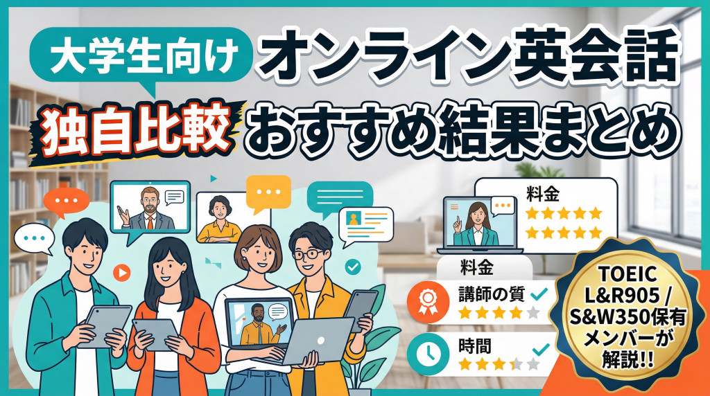 大学生向けオンライン英会話を独自比較した【おすすめ結果まとめ】TOEIC L&R905/S&W350保有メンバーが解説!!