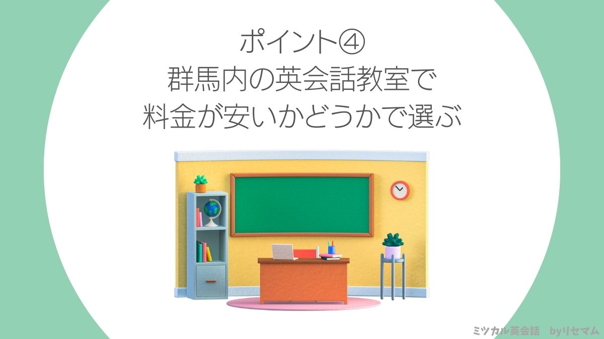 - 群馬内の英会話教室で料金が安いかどうかで選ぶ