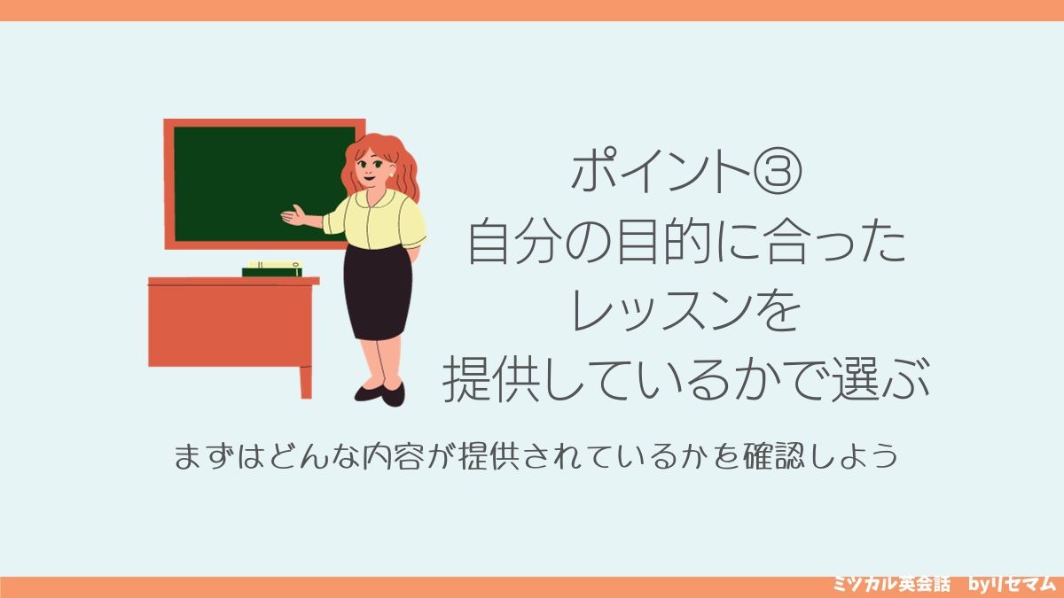 ポイント③:自分の目的に合ったレッスンを提供しているかで選ぶ