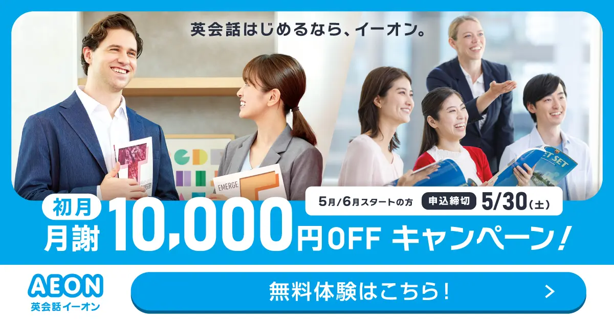 英会話イーオンはレッスン満足度95.6%達成(※)【5/30まで】初月月謝10,000円OFFキャンペーン開催中