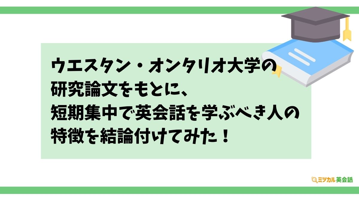 ここではウエスタン・オンタリオ大学の研究論文をもとに、短期集中で英会話を学ぶべき人の特徴を解説していきます。まず結論からお伝えしましょう。