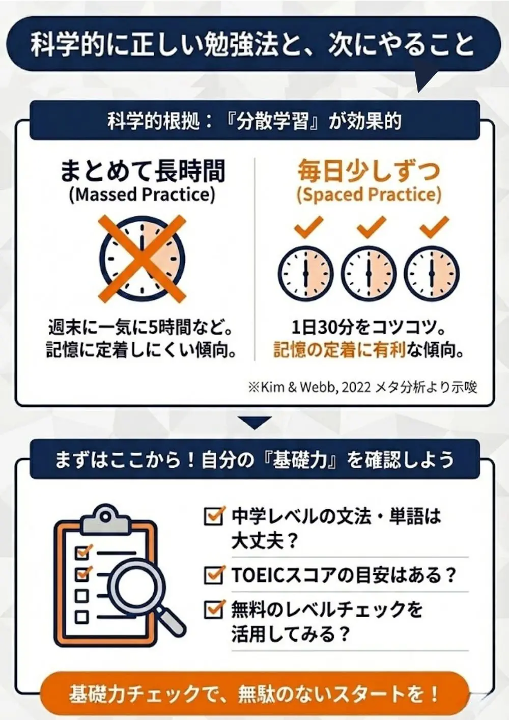 文法や単語の理解が不十分なまま始めると、内容が難しすぎてついていけず「効果を感じられない」と感じる人も少なくありません。
