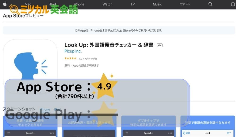 ただ口コミを確認すると、何度発音してもうまくいかず、つまずいてしまう人もいることが分かっています。試しにお手本の音声を録音して判定させたところ、なんと×になったという声もあります。発音判定の機能がほかのアプリよりも劣るため、TOP5外となりました。