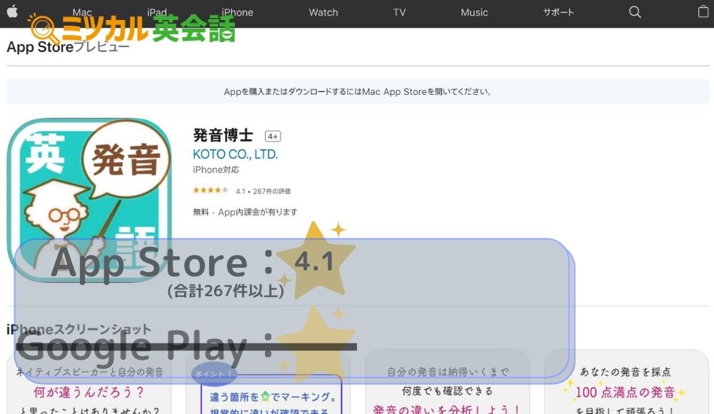 ただしもともとは発音の練習よりも、フレーズを覚えるために開発されたアプリです。発音の矯正を徹底的に行いたい人は、フレーズの習得に気を取られて本来の目的を見失いやすいためランク外としました。