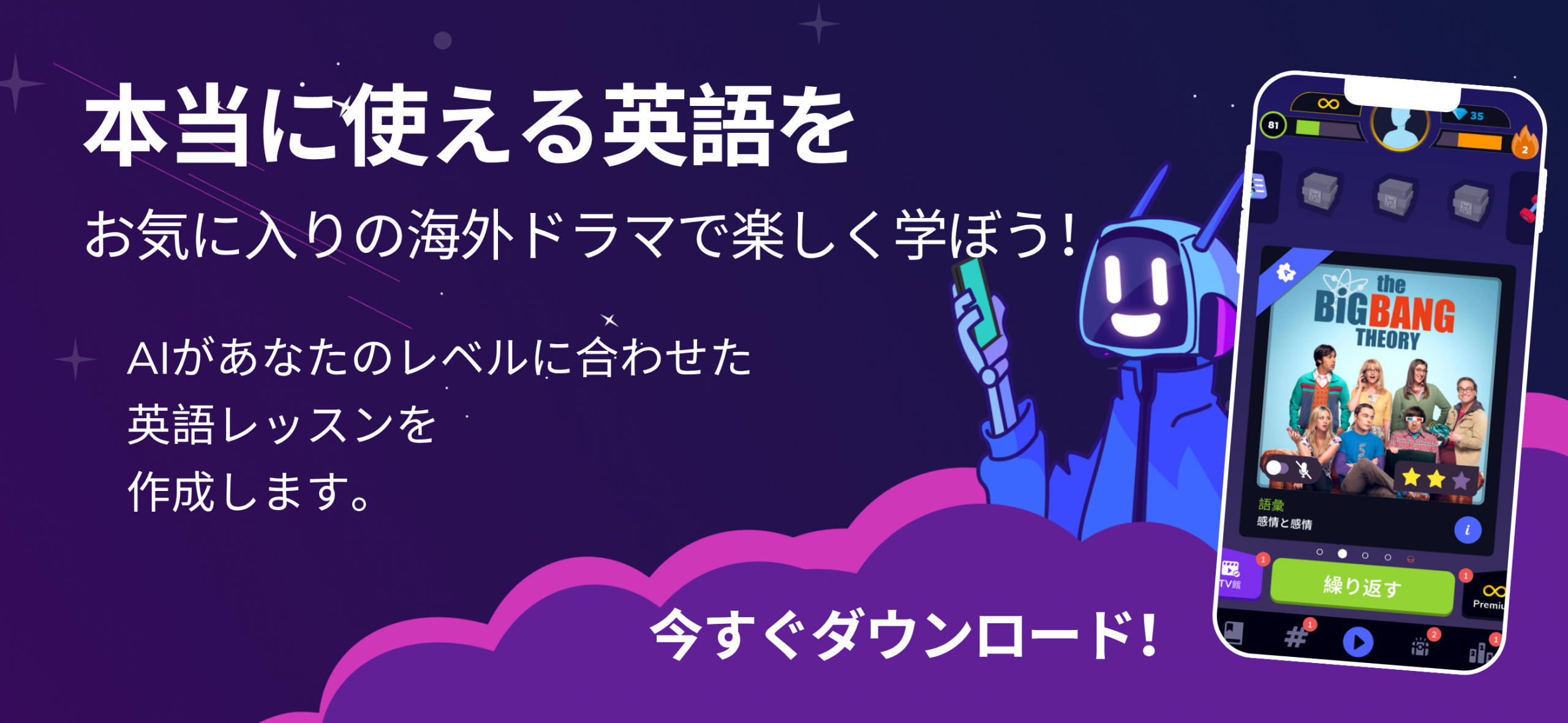 英語の勉強が続かなかった人でも、ドラマの世界に引き込まれながら楽しく学べるのが魅力。