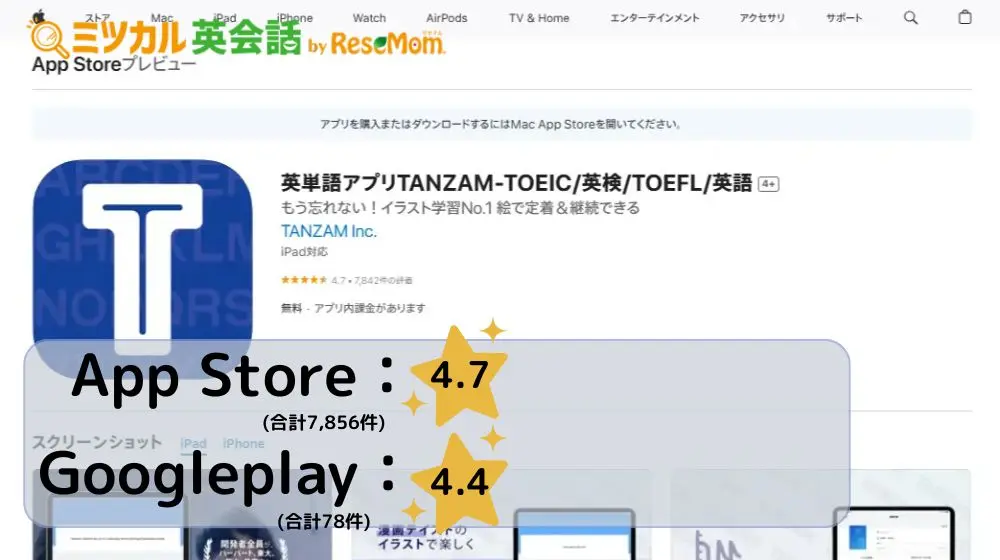 iOS(★★★★★ 4.5) Google Play(★★★★☆ 4.3) |