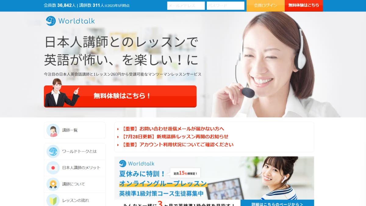 ワールドトークは日本人講師在籍数1位だから安心してスタートできる