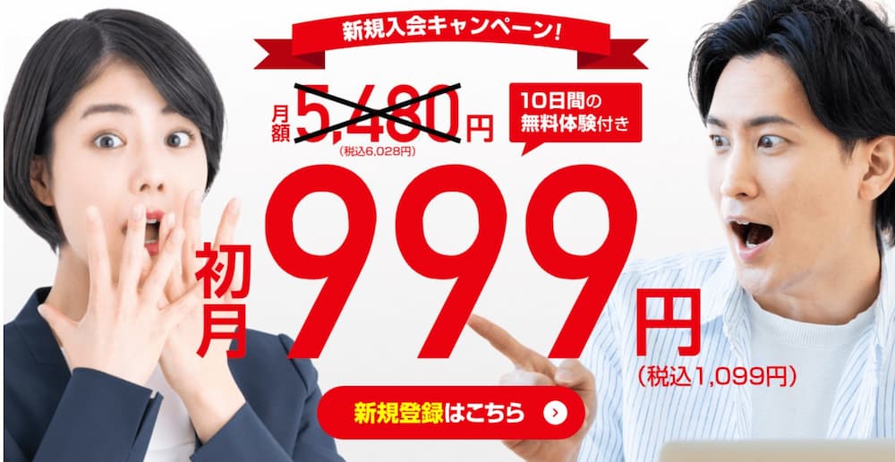 ※無料体験7日間+5,000円分のAmazonギフト券をもらえるため超お得!!