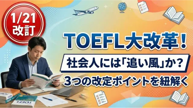 ミツカル英会話(株式会社イード)のプレスリリース 1/21からTOEFLが変わる!「社会人有利」説は本当?3つの変更点を徹底検証 2026年1月27日 リセマム編集部 https://resemom.jp/mitsukaru-eikaiwa/wp-content/uploads/2025/10/mitukaru-english-logo.png ミツカル英会話 …