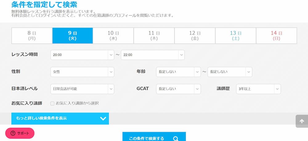 また筆者が体験した印象では、早朝5時から6時台や深夜24時から25時までの時間にレッスンを受け付けている講師が少ないイメージでした。