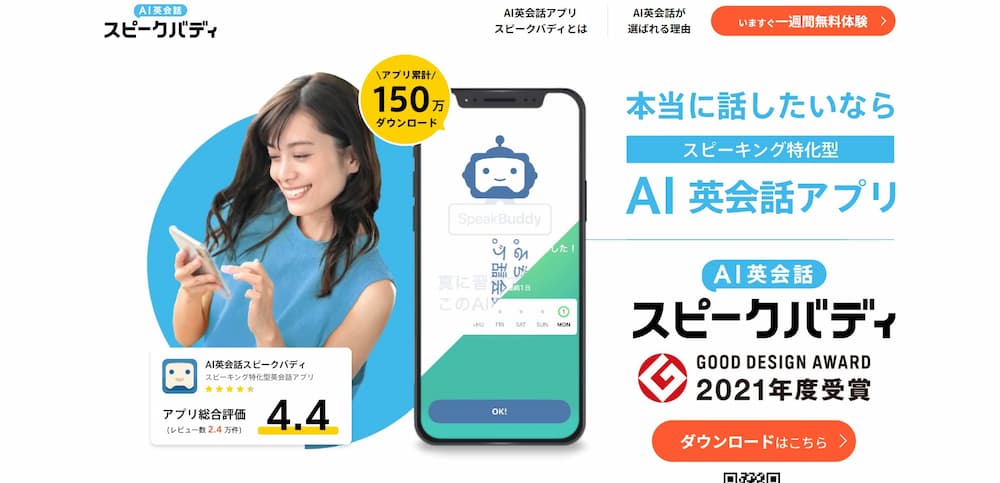 出典:スピークバディ\スマホアプリで1分以内に試せる/