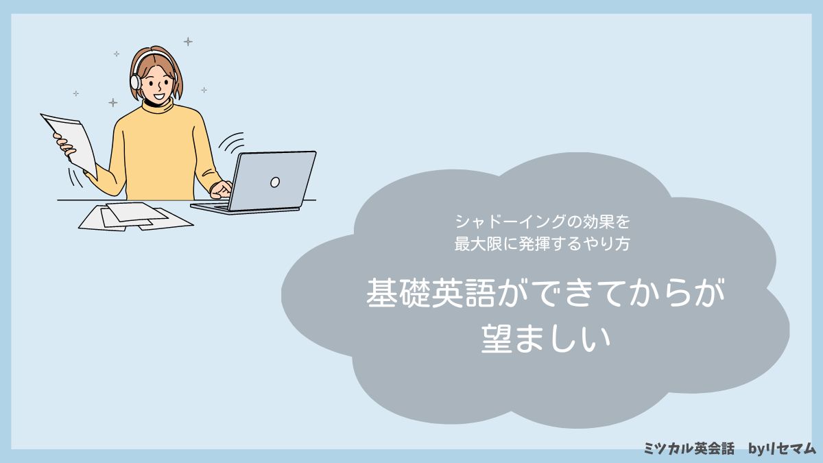 つまり、基礎英語が出来上がるまで、シャドーイングメインの学習はおすすめできないということなんですね。