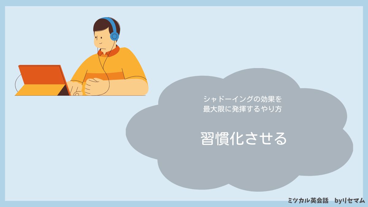 また、習慣化させるためには、「朝起きたらシャドーイングを1セットする」「帰宅したら即シャドーイングをする」など、日々のルーティンの中に自然に取り入れるようにしてみましょう。そうすれば、より習慣化しやすくなります。