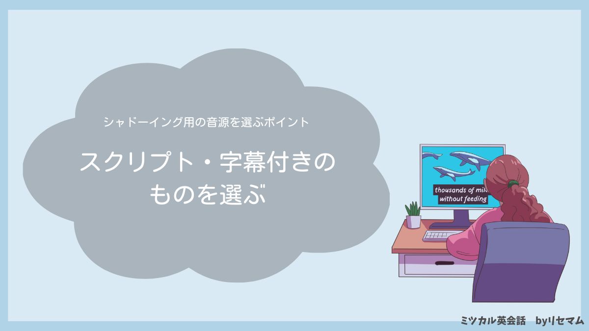 また、スクリプトを見ることで、「何を言っているかわからなくて、真似ができない」という問題もある程度回避できます。スクリプトがあれば、何を言っているかは目で確認できるからです。