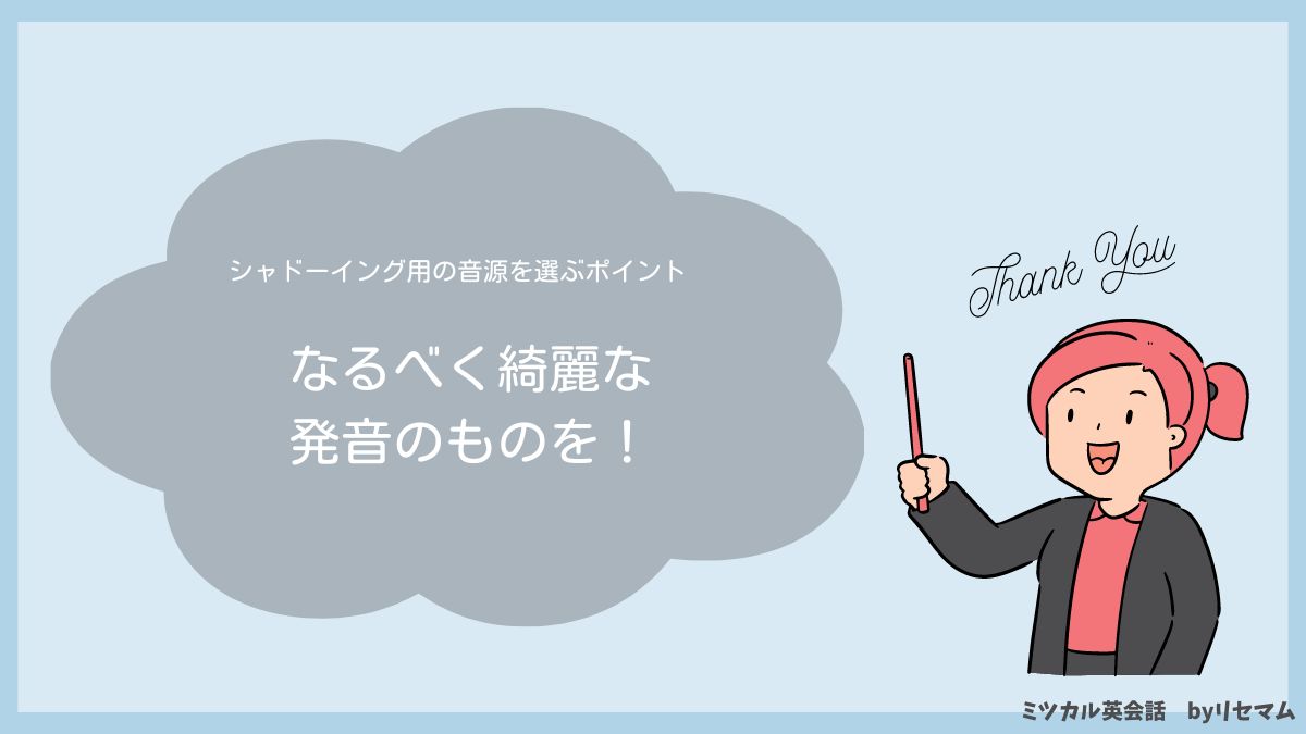 シャドーイングの音源は市販教材にこだわる必要はありません。しかし、市販教材以外を使うなら、発音が綺麗なものを選びましょう。
