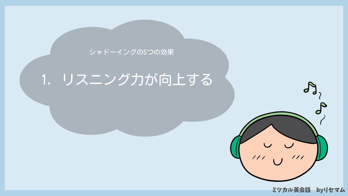 シャドーイングでは英語の音源にじっくり耳を傾けることになります。シャドーイングでは聞き取ったものをそのまま真似をするのですが、しっかり音を聞かなければならないため、自然とリスニング力が向上していくのです。