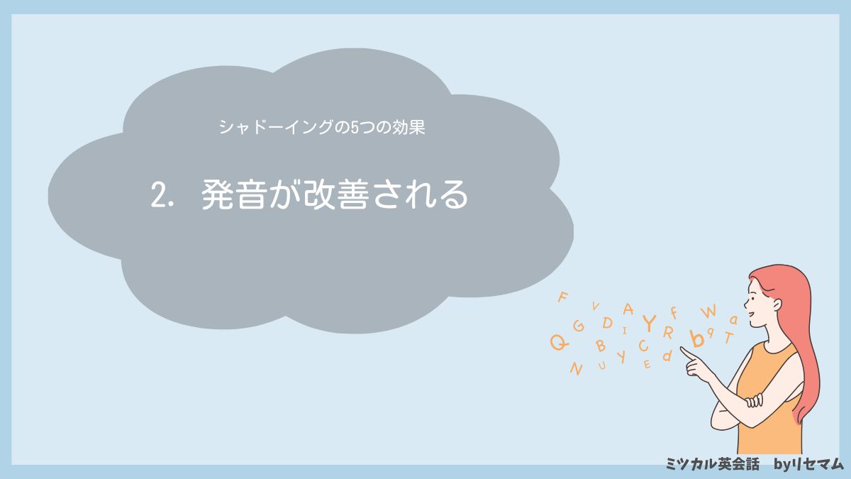 シャドーイングをする場合は、聞き取った文章を発話することになりますから、繰り返していれば発音も改善されていきます。