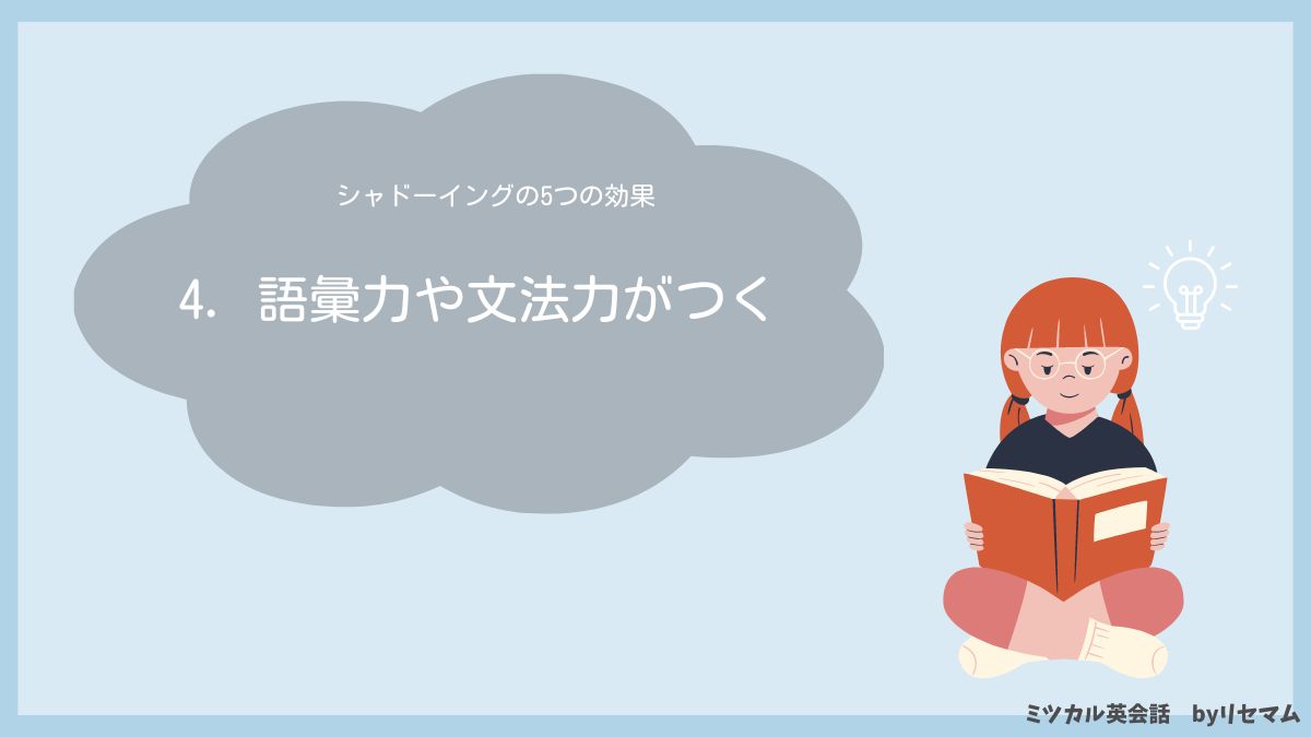 シャドーイングが正しくできていれば、語彙力や文法力もついていきます。