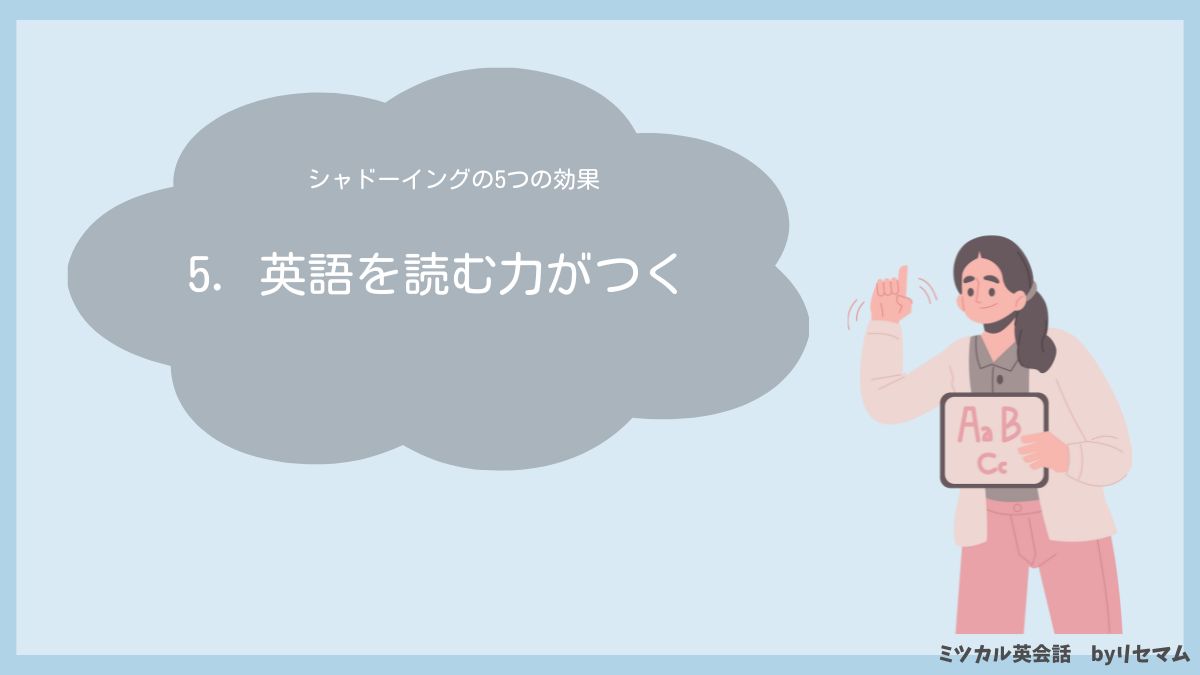 スクリプト付きでシャドーイングをする場合は、自然とリーディング力もアップしていきます。これは、英文を目で見て読むことが習慣になるからですね。