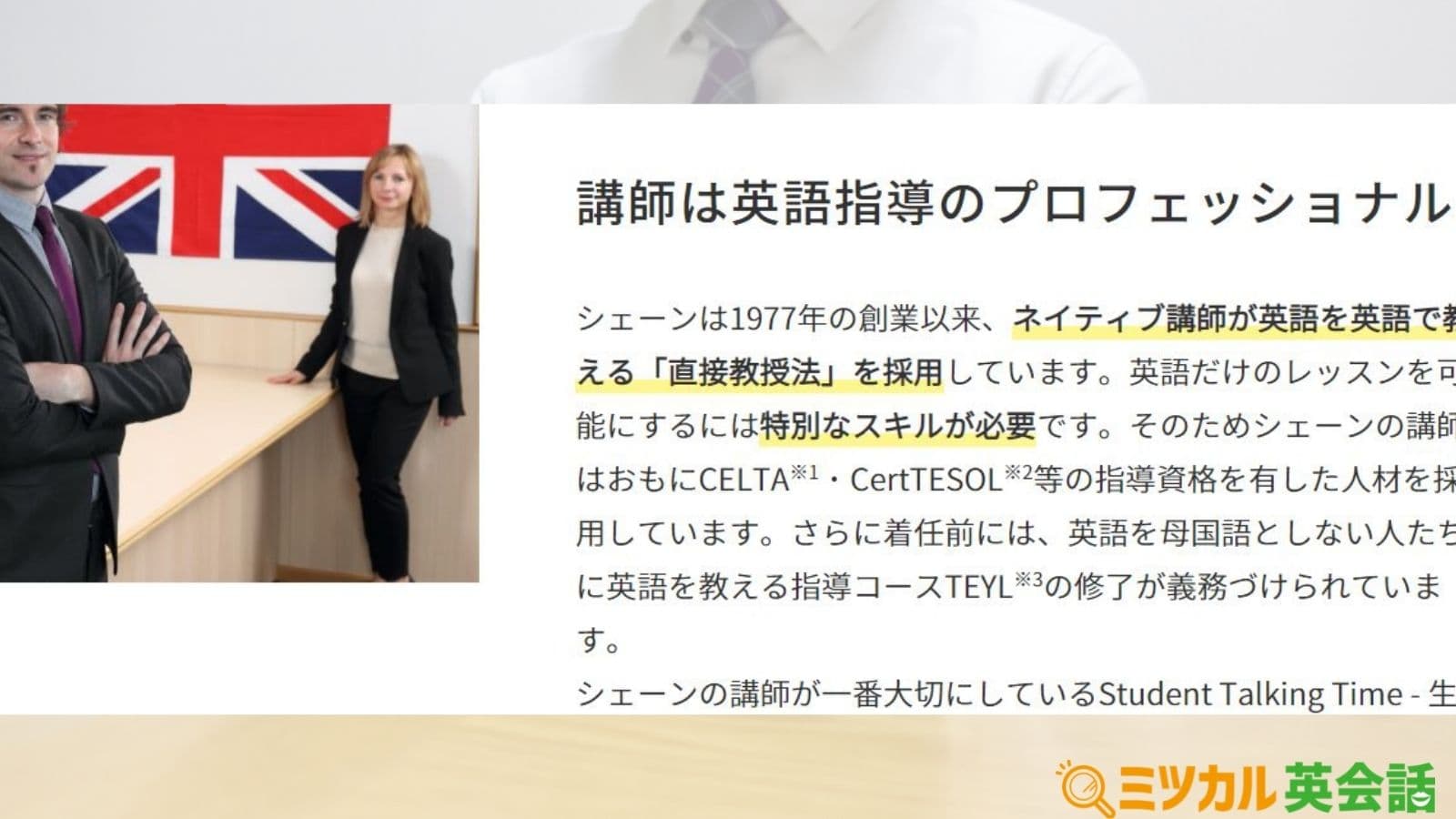 シェーン英会話の一番の特徴は講師のレベルの高さです。